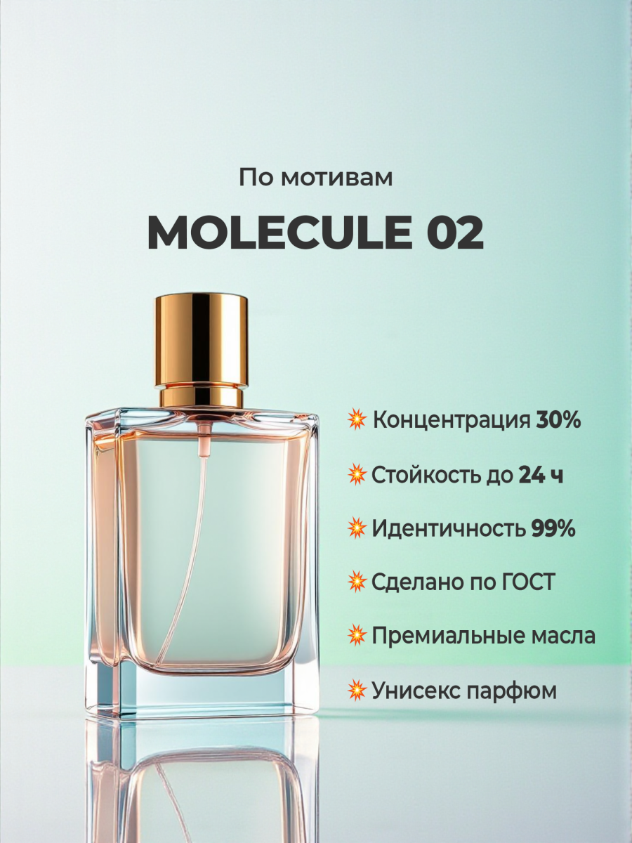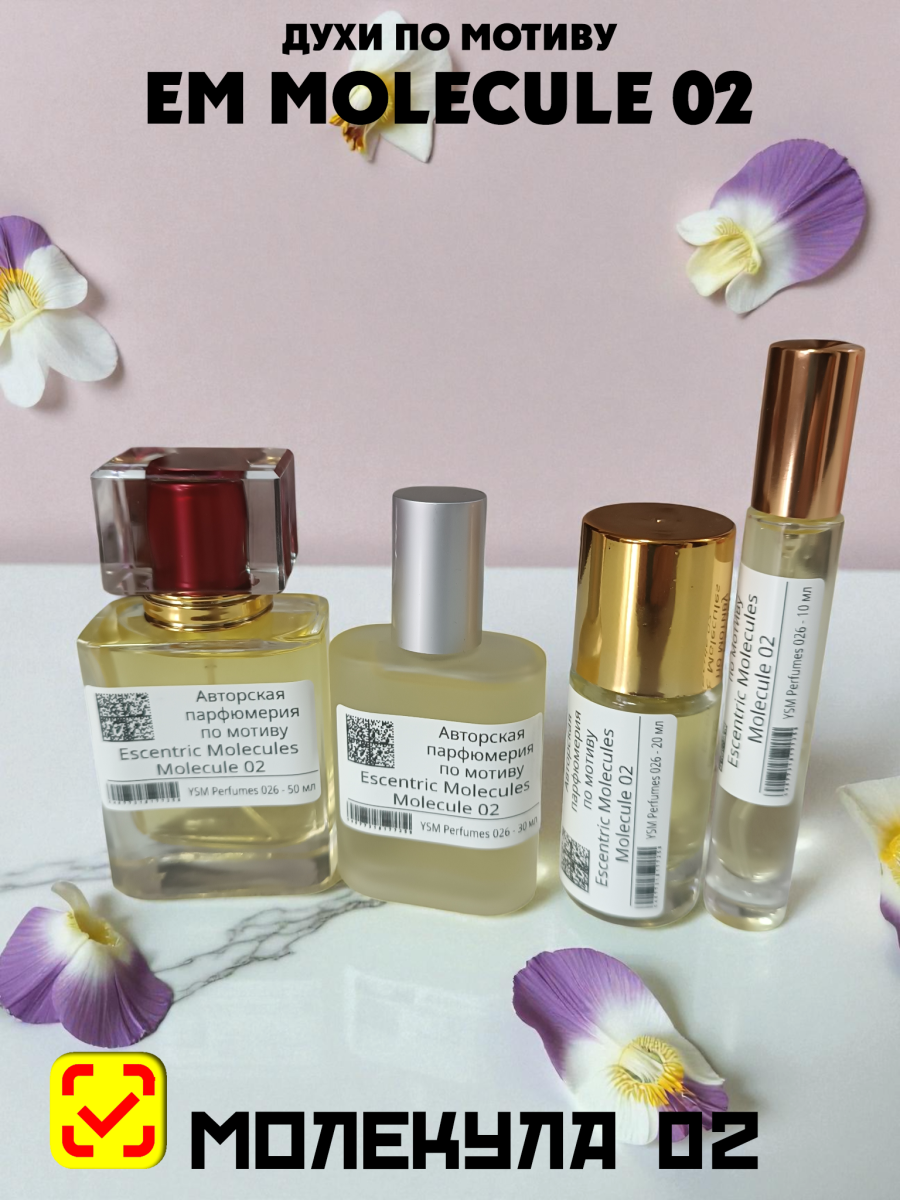 Не тестируйте на блоттере (бумажке): На бумаге Molecule 02 почти не пахнет или пахнет спиртом. Ей нужно тепло кожи, чтобы «завестись». Аносмия: Некоторые люди генетически не способны чувствовать запах амброксана. Для них этот флакон будет пахнуть «просто спиртом» или «ничем». Не путать с Escentric 02: Molecule 02 = чистый амброксан (спокойный, тихий, телесный). Escentric 02 = амброксан + ирис + жасмин (более яркий, цитрусовый, морковно-ирисовый запах).