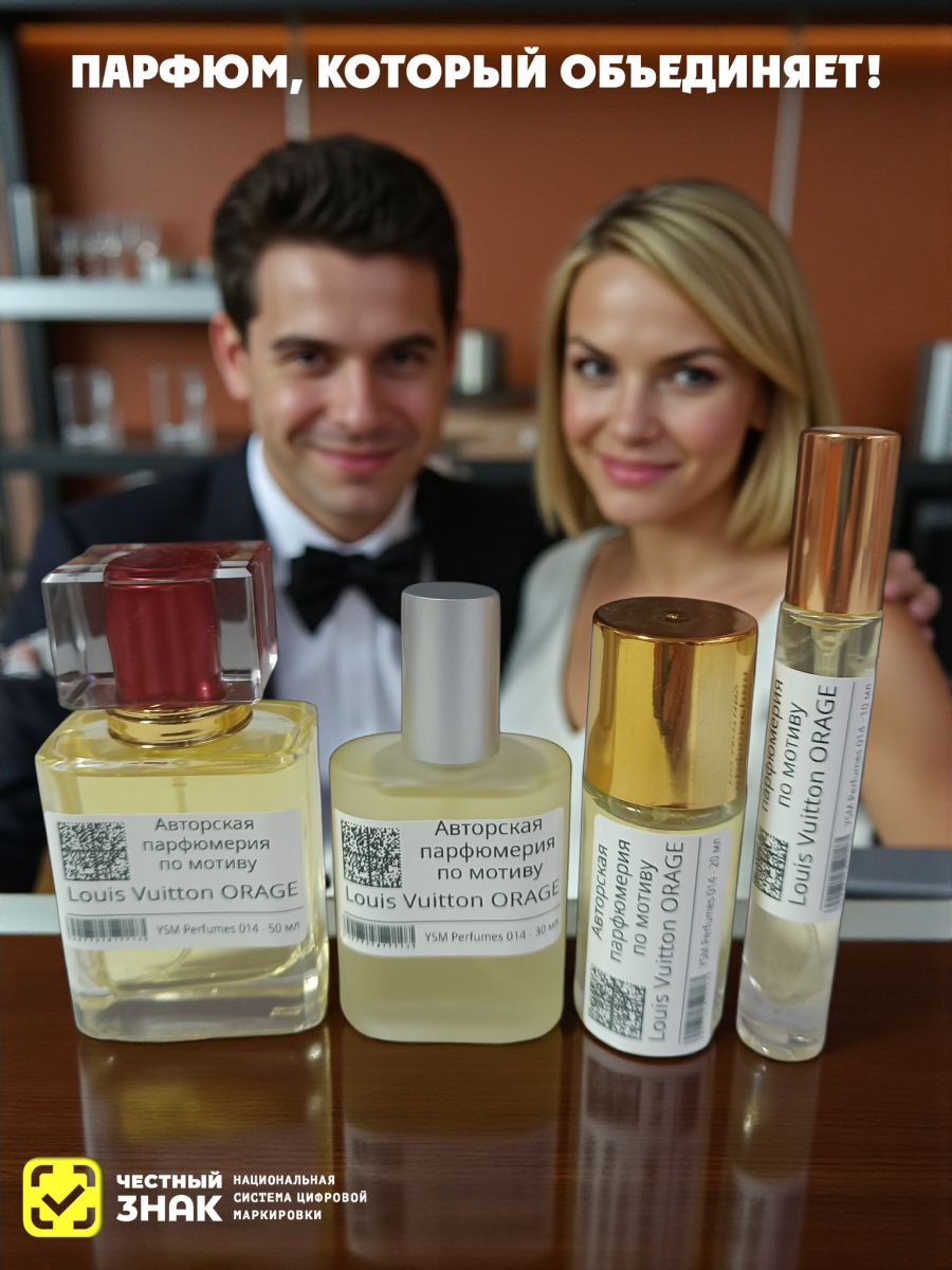 В верхнем аккорде парфюма звучит цитрусовая свежесть бергамота и грейпфрута, напоминающая вспышку молнии. Оригинальная композиция из элегантного ириса и освежающего ветивера дополнена яркими, как молния, нотами пачулей. Элегантные ноты ириса укрощают интенсивный аромат пачули. Свежесть гедиона, пряные искорки перца и белый мускус придают композиции объем и атмосферность. Louis Vuitton Orage — дерзкий, полный жизни аромат, который хочется вдыхать бесконечно.