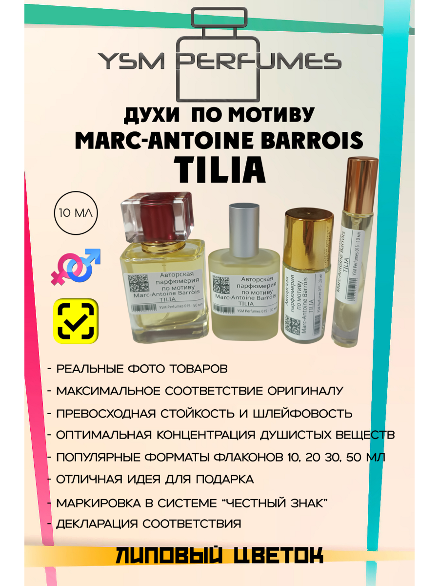 Стойкость: Феноменальная. Как и Ганимед, Tilia держится на коже более суток, а на одежде — до стирки (и иногда после). Шлейф: Очень длинный, заполняющий пространство. Аромат диффузный и заметный для окружающих. Требует умеренной дозировки (1-2 распыления). Гендерная принадлежность: Заявлен как унисекс. Однако из-за яркого цветочного профиля (липа, жасмин) многие склонны относить его ближе к женской стороне, хотя древесная база делает его вполне носибельным и для мужчин, любящих сложные цветочные композиции.