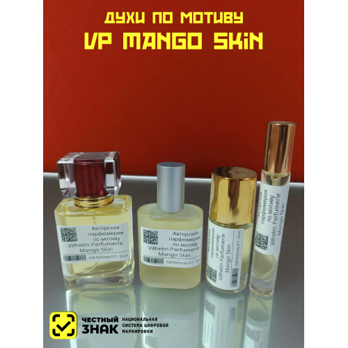 Mango Skin – селективная парфюмерная вода с фруктово-цветочным ароматом для женщин и мужчин, созданная в 2018 году американским парфюмерным брендом Vilhelm Parfumerie. Нежный, манящий, солнечный аромат – стильная летняя композиция, которая построена вокруг чарующего запаха сладкой мякоти и кожицы манго в окружении освежающих цитрусов и изысканного цветочного букета.